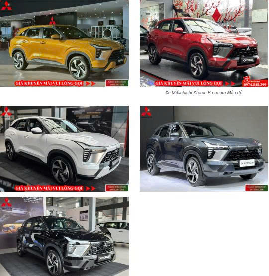 – Mitsubishi Xforce Premium 5 màu: trắng, đen, đỏ, xám, vàng