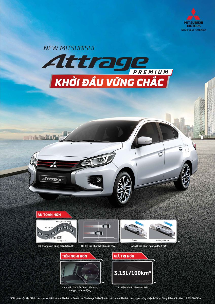 Động cơ MIVEC 1.2L kết hợp với hợp số tự động vô cấp INVECS-III, cùng trọng lượng thân xe nhẹ, giúp cho Attrage đạt được mức tiêu thụ nhiên liệu tối ưu.